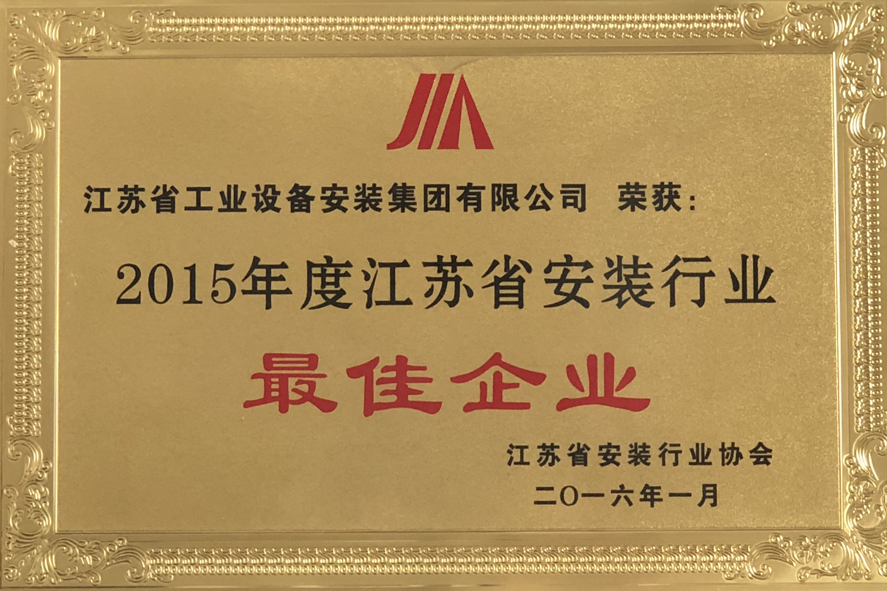 2015年江蘇省安裝行業(yè)最佳企業(yè)